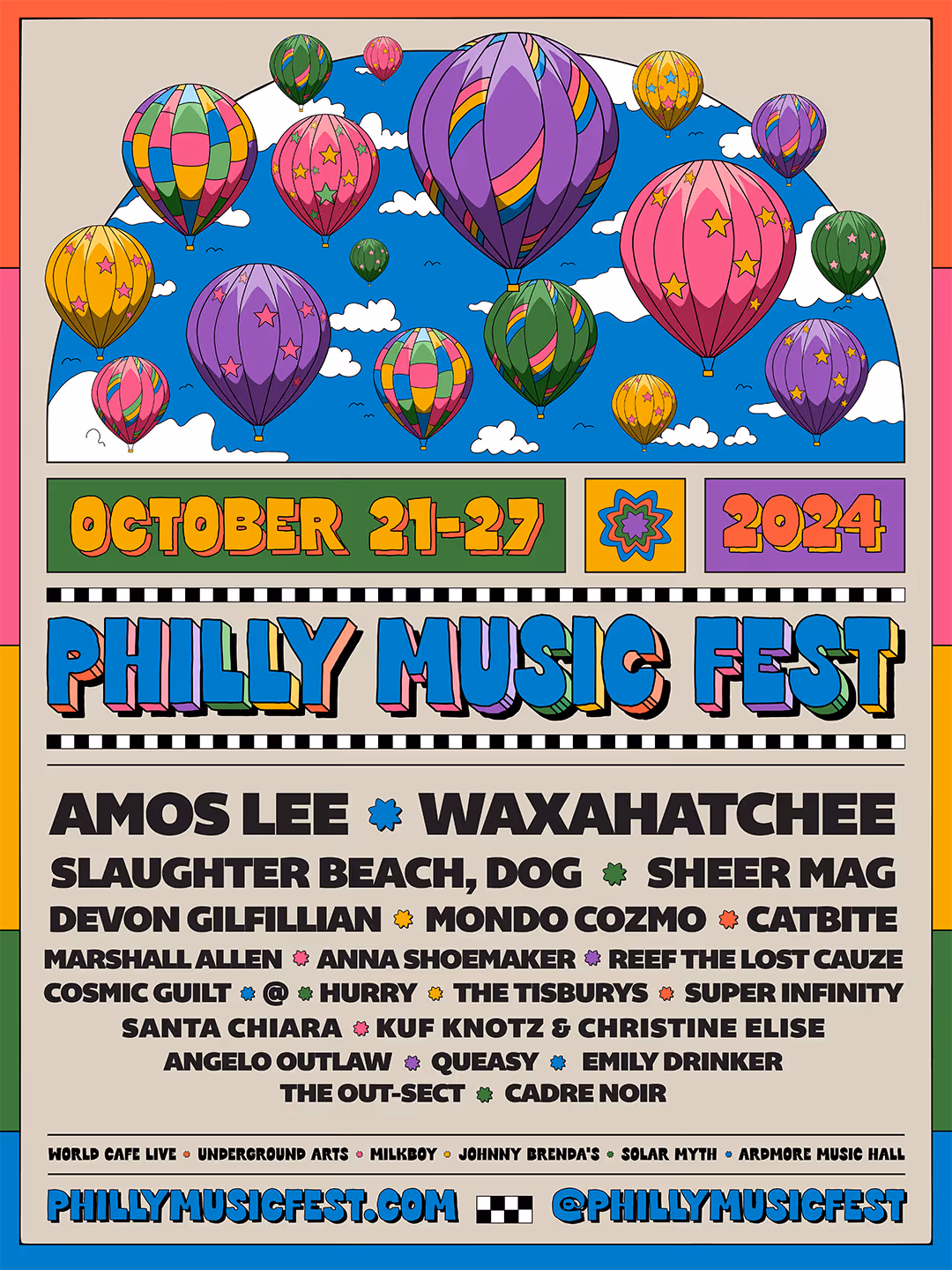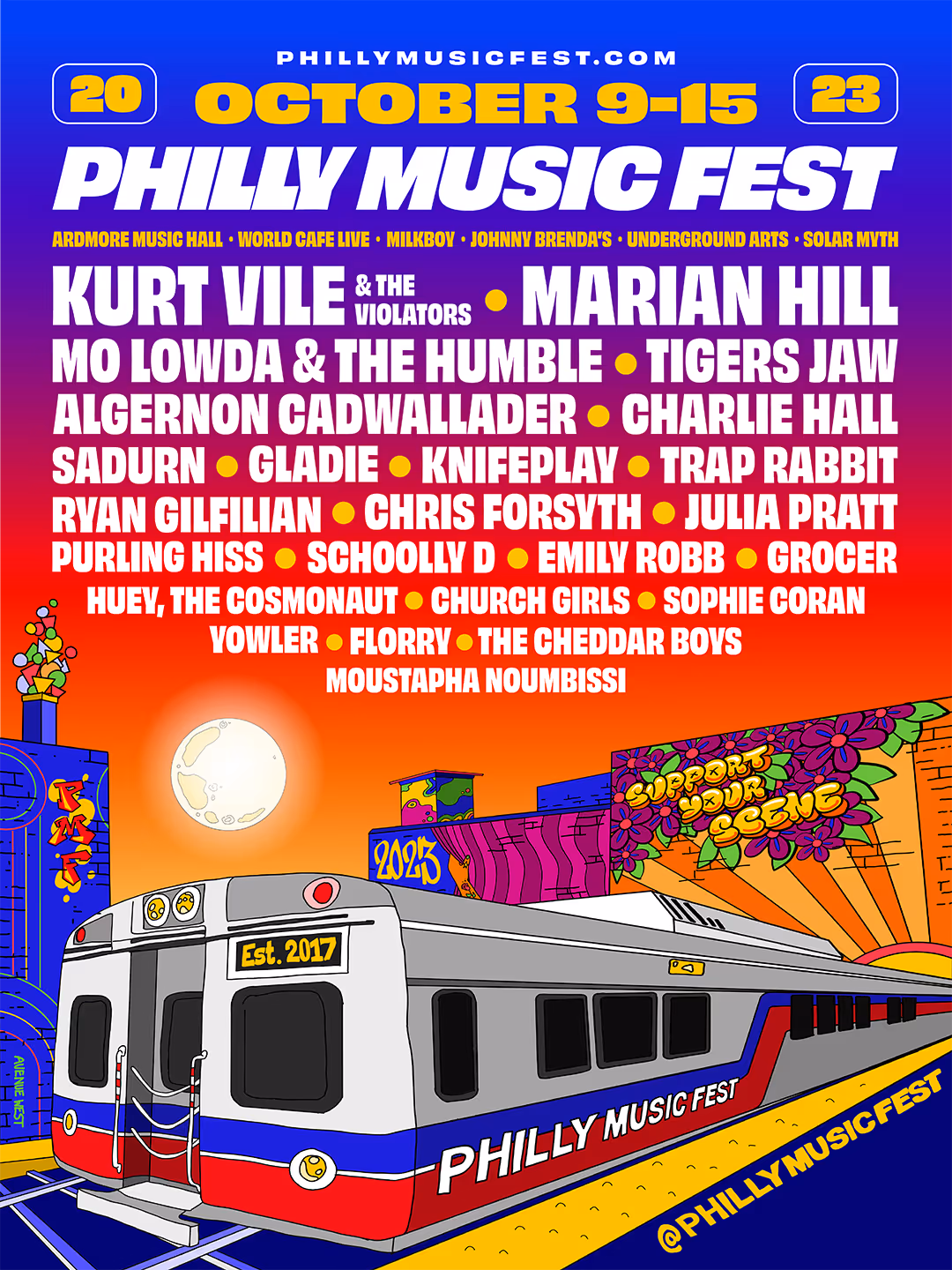 The Menzingers • Alex G • Hop Along • Ivy Sole • Son Little • Spirit of the Beehive • Control Top • Queen of Jeans • Moor Mother • Moses Mosima • Barney Cortez • Irreversible Entanglements • Stella Ruze • Annonxl • Highnoon • Moor Jewelry • West Philadelphia Orchestra • Lunch • Kelsey Cork and The Swigs