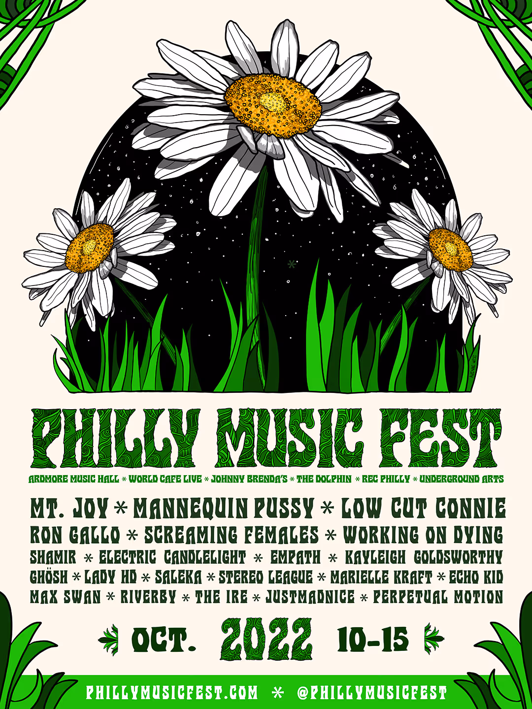 Each year, we gather to celebrate the extraordinary depth, diversity, and talent of Philadelphia’s music scene. From hip hop to folk, rock to jazz, punk to bluegrass, our Philly stages have come alive with the sounds that define our vibrant creative community. We are intentional about honoring the full spectrum of artists who shape the city’s cultural heartbeat—amplifying emerging voices alongside established headliners. We consider every artist that has played Philly Music Fest to be “in the family” and we treasure the Philly artists that have defined the last decade of Philly music. Please take a spin through the years and listen to the artists, buy some merch and go see a live show.
